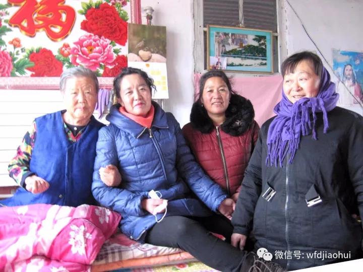 随后,我们又来到卢屯、尹屯,分别去看望那里贫困的信徒,把教会的关爱带给他们。之后又去了大邢沟,看望了3户贫困信徒。78岁的初春红姊妹原来在小组里面带诗,后来有病了,不能行走,小组就安排在她家中聚会,她儿媳妇负责接待。初姊妹虽然不能说话了,但是满面红光、面带微笑,头发梳理得干净利索,腰杆挺直坐在炕上。另一户人家是82岁的姊妹,她说特别愿意接待弟兄姊妹。
