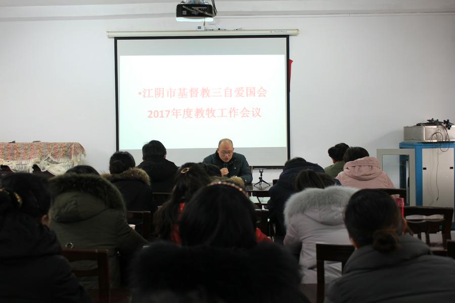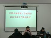 31日上午,召开全市各场所负责人会议,由爱国会副主席陈建芬同工主持,爱国会戴亚萍主席作江阴市三自爱国会2017年度工作总结报告,同时听取各场所负责人2017年度工作总结汇报。31日下午,召开全市教牧人员会议,由爱国会副主席顾藕芬牧师主持,爱国会秘书长顾周荣牧师作2017年度全市教牧工作总结汇报,同时有两位同工,代表全市教牧人员发言,畅谈各自在侍奉中的经历和感触。
