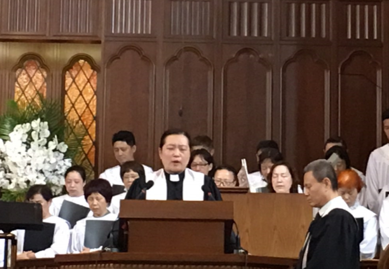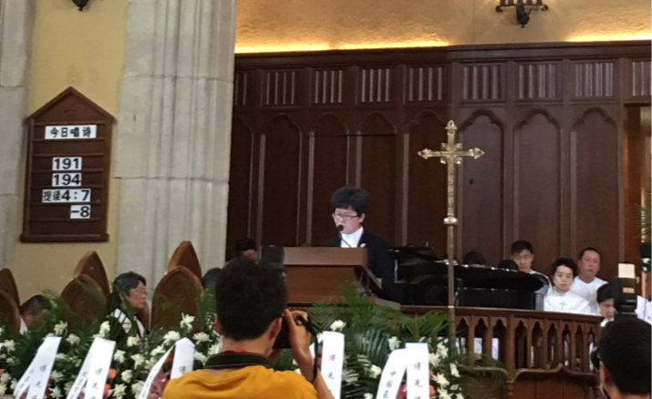 中国基督教协会副会长、总干事阚保平牧师宣读行述,傅长老的女儿傅怡冰女士作为家属代表致辞。她提到,父亲在沐恩堂举行追思礼拜对她有特殊意义。父亲是在沐恩堂信主、受洗,包括她的母亲、曾祖母、祖母和她自己都在沐恩堂受洗,一起成长。