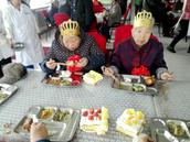 集体祝寿开始了!“老寿星”们穿上了节日的服装,戴着生日“寿星帽”、胸配大红花,笑容满面的来到聚会现场,近50多位“老寿星”,也是一个不小的场面!这真是主内一家人、主内一家亲!大家彼此问候在基督里平安、喜乐;养老院的姜副院长和田主任等领导为老弟兄姊妹送上神的祝福、送上养老院全体同工的祝福;在赞美和谢恩的祷告中,老人们开始品尝生日蛋糕、品尝生日菜肴,生日聚会一片祥和、感恩、和睦的气氛。