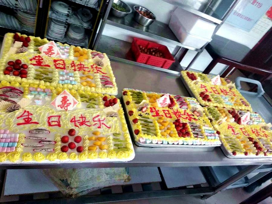 为了这一天,红十字养老院自己的食品厂早就开始开始筹备。他们精心挑选了各种水果、面粉、鸡蛋、奶油等,用心为老人们制作了味道适口、干净卫生、营养丰富、没有添加剂的生日蛋糕,他们不辞辛苦的忙碌,制作蛋糕的过程整整耗时一天半的时间。