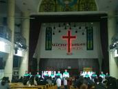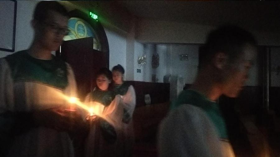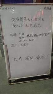 晚上7:30,教会青年团契、读经团契、查经团契和新人接待组联合举行了受难日感恩默想。主领人王帅传道首先问安,以诗篇23篇宣召,此后张明霞执事献上代祷,会众一起歌诗《神羔羊》,兰颖姊妹宣读了经文太27:26、29、35、37的经文。此后堂内灯光渐暗下来,青年团契的服侍同工手持红蜡烛,列队走到台前,依次带领大家默想主耶稣的“十架七言”,从心灵深处思想主耶稣在十字架上最后的劝勉祷告和伟大宣告。最后大家歌诗《宝贵十架》,谢春兰长老做了祝福祷告。