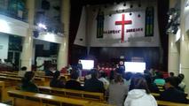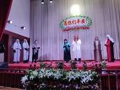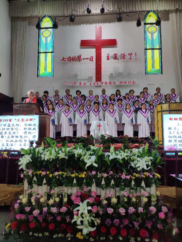 上午9:30分,钟声敲响,在钢琴悠扬的伴奏声中,诗班及主礼人、证道人依次手持洁白的百合花列队进入堂内。主礼人杨森林牧师向会众问安,并宣布复活节主日崇拜开始。堂内楼上楼下座无虚席。各色鲜花装点圣台,增添了节日的欢乐气氛。主礼人宣读了圣经经训:赛65:17---25、林前15:19—26、约20:1---18的经文,会众分别歌诗新编赞美诗108首《主复活歌》和新编赞美诗265首《愿跟随主歌》,诵读了启应经文诗篇118:1—2、14—24的经文。诗班献唱了诗歌。王帅传道以林前15:3—4的经文,做了题为《耶稣复活了》的证道。从七个方面进行分享:一、复活是福音的核心;二、复活是信仰的基础;三、复活是称义的根据;四、复活洗礼的意义;五、复活是奉献的标杆;六、复活是成圣的动力;七、复活是稳固的保障。