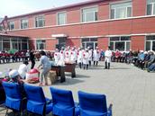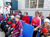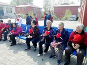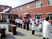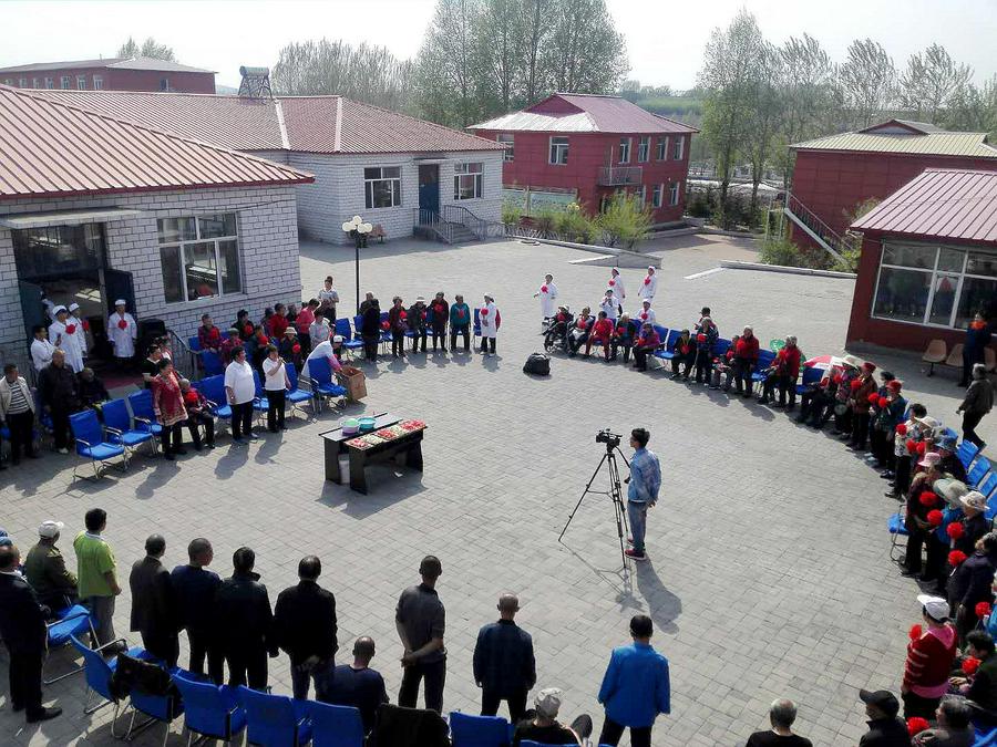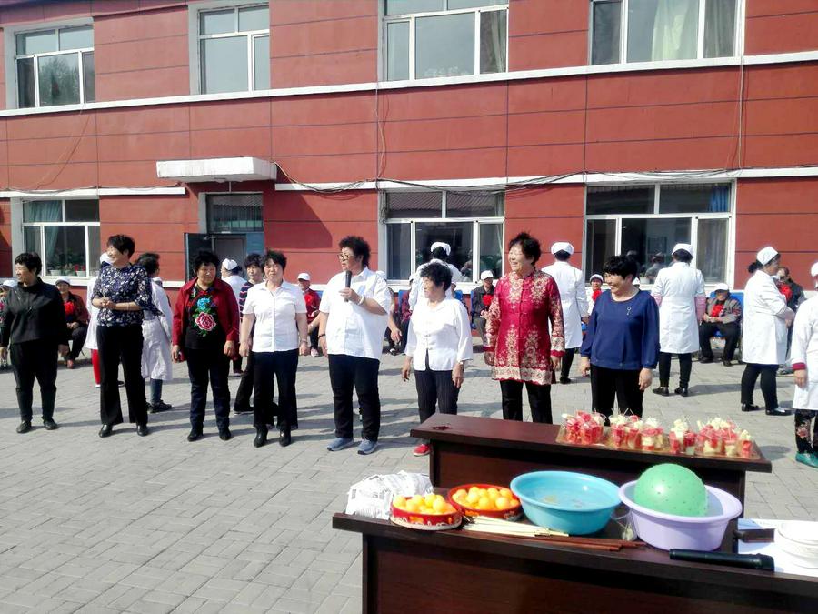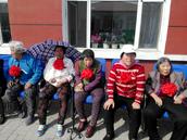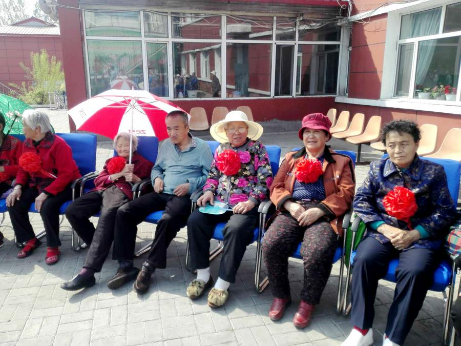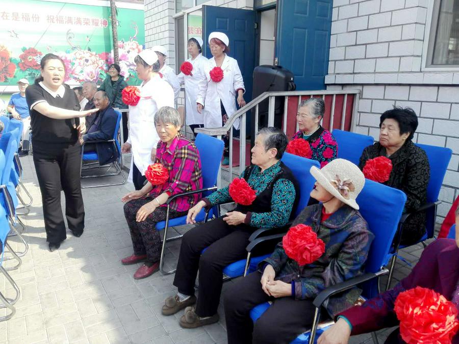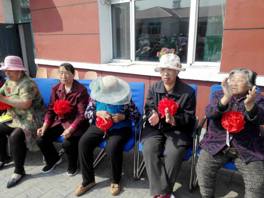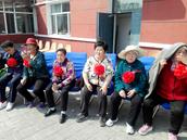 在北国阳光明媚的喜庆日子,母亲节庆祝聚会活动在养老院的露天广场上举行了。养员姊妹们胸带大红花,养员弟兄也前来参加祝福,行动不便的老人们也坐着轮椅来到母亲节活动现场。大家围绕坐在广场周围,面带喜庆和笑颜。院领导、服事的办公室同工、护工等220多人参加了聚会活动。