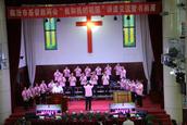 九时,会议由市基督教协会会长杨森林牧师主持。全体肃立,由来自尧都区五牧区的管弦圣乐队奏响国歌。教会唱诗班合唱了《我和我的祖国》《求主福佑中华歌》。市委统战部副部长、市宗教局局长郭琰讲话,他首先对讲道交流活动表示祝贺,充分肯定了全市基督教界在贯彻执行“(国旗、宪法法律法规、社会主义核心价值观、中华优秀传统文化)四进教堂”、规范财务管理、规范堂点建设等方面所取得的成就。为庆祝中华人民共和国成立七十周年,全市基督教界积极行动,用书画、歌舞等生动活泼的形式,以自己独有的形式为祖国祝福,激发了广大信众的爱国热情。同时他提出了三点希望,基督教要秉承爱国爱教传统,共同构建富强、民主、文明、和谐美丽家园;基督徒要做光做盐,自觉成为自由、平等、公正、法治美好社会的践行者;荣神益人,争做爱国、敬业、诚信、友善的好公民。市三自副秘书长谢春兰宣读了《罗马书》13:1—7的经文。市基督教三自爱国运动委员会协会主任陈丽致贺辞。市基督教三自爱国运动委员会秘书长黄海林牧师献上代祷。