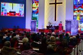 赞美会由李申申牧师主持。西山福音堂的圣诗班、家庭事工、青年事工等为老年弟兄姊妹表演了大合唱赞美诗、家庭伦理的圣剧、律动舞蹈等。西山福音堂的各位牧师、执事和会众等参加了圣诞节活动。