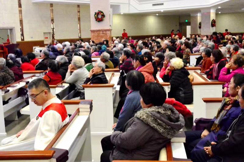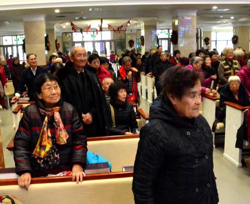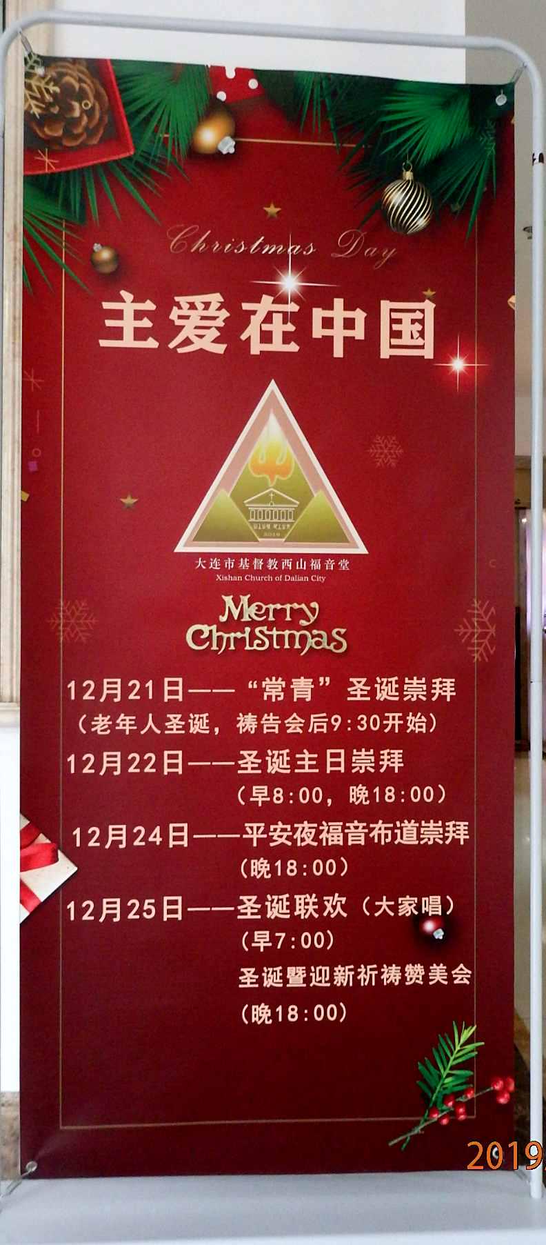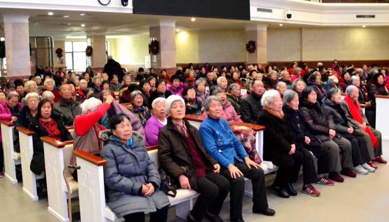 2019年12月21日礼拜六上午,基督教大连西山福音堂充满喜气洋洋的喜乐氛围,庆祝圣诞节的系列活动在七十五岁以上弟兄姊妹的“常青圣诞节赞美会”中开启。