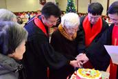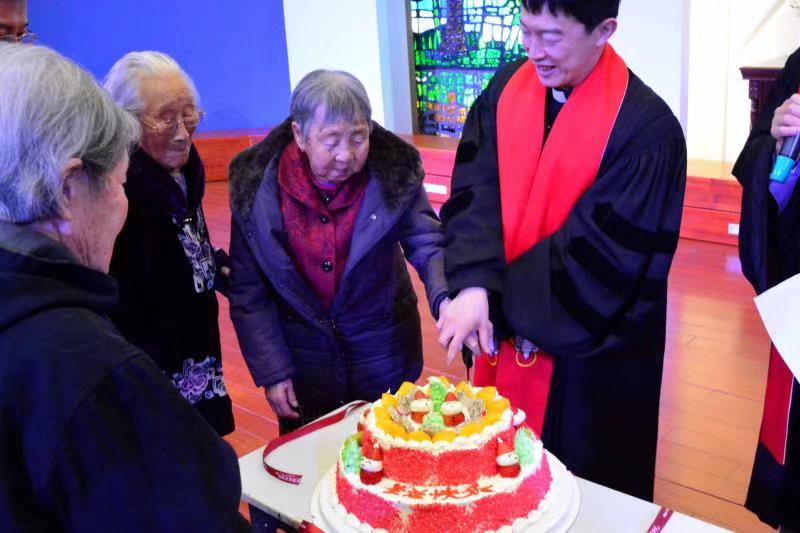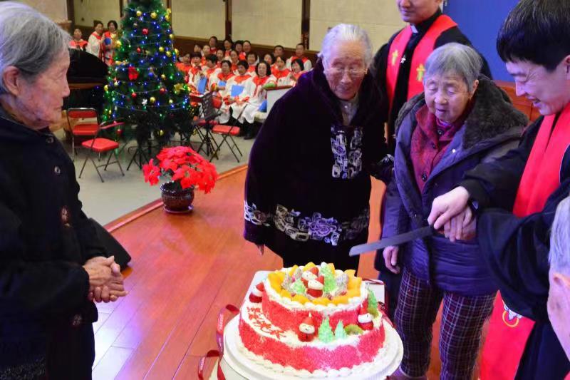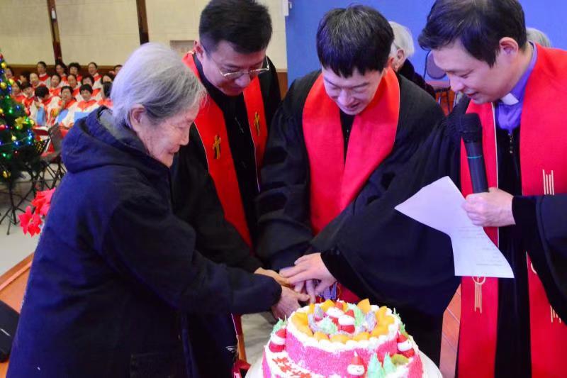 据大连市基督教爱国会副主席、西山堂吴兵主任牧师介绍:西山福音堂每年都要以“常青”为主题,举办75岁以上老年弟兄姊妹为主的老年圣诞节。今年的常青圣诞节由吴兵主任牧师以“五种果子”为中心的讲章为主证道。庆祝会在六位九十岁以上老人登上圣台与牧师共同切开别具特色的圣诞蛋糕达到了高潮,会场感恩的掌声经久不息,把荣耀归给上帝。
