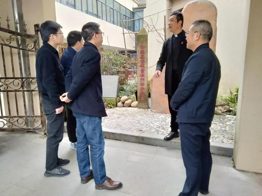 2021年3月9日下午,浙江省民宗委办公室郑主任一行4人,在台州市民宗局梁景海副局长的陪同下莅临台州椒江基督教堂调研,椒江堂负责人孔爱卿教师热情接待并陪同调研组参观、汇报教堂各项工作,郑主任一行通过实地调研“五进宗教场所”和“防疫防控”工作做得很到位,给予充分肯定。