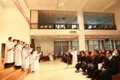 按立典礼在刘凤阙牧师的代祷下开始,神学院二年级的诗班献唱《我爱中国基督教会》,胡凯明牧师就马太福音11章25-30节的经文以《仆人的谦卑》为题,勉励即将被按立的牧师或长老要学习耶稣的谦卑、效法耶稣的谦卑、做信徒谦卑的好榜样。