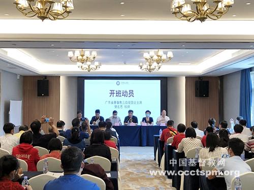 开班礼由广东省基督教协会常务副会长雷玉明牧师主持,广东省基督教三自爱国会主席樊宏恩牧师动员讲话。