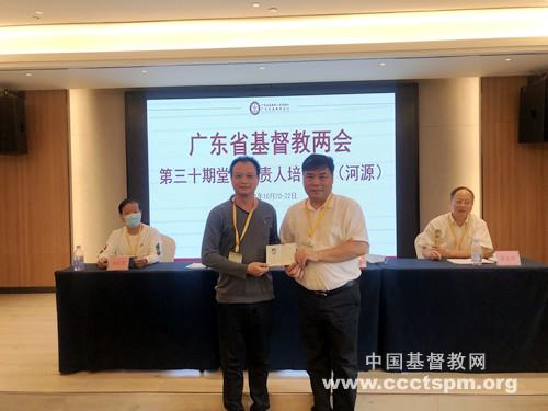 结业礼结束后,广东省基督教两会为河源基督教的教职人员颁发《基督教教职人员证》。培训班在樊宏恩牧师的祷告祝福中圆满结束。