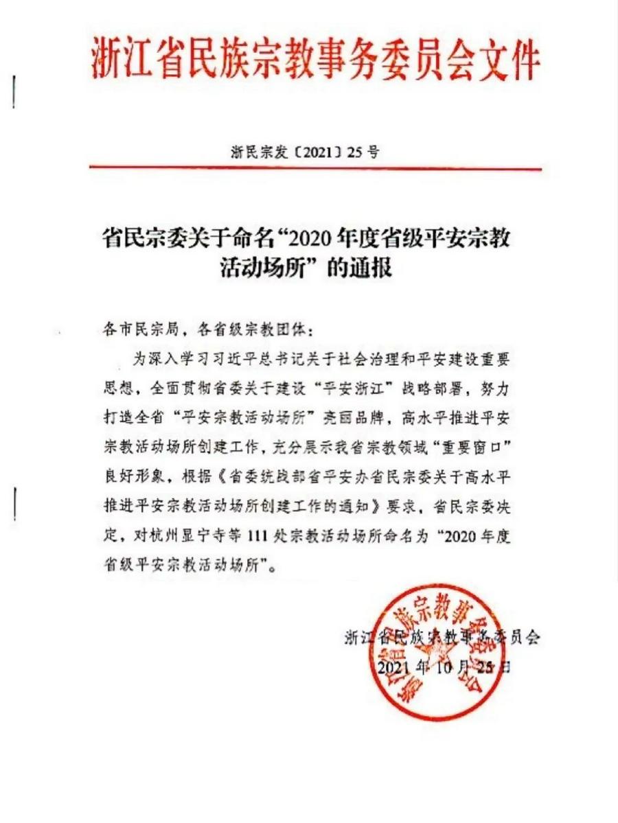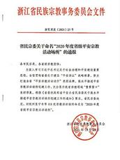 据浙江省民族宗教委员会网站和宁波慈溪市统战系统的《同心慈溪》微信公众号消息,在2020年度浙江省平安宗教活动场所创建活动中,广大宗教界代表人士和信教群众广泛组织、积极参与,高水平推进平安宗教活动场所创建工作,取得了较好的创建成效。