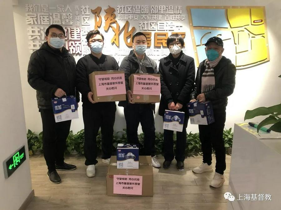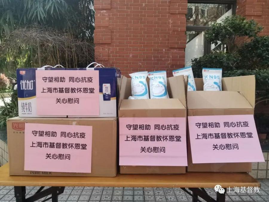 风雨同舟,安危与共。静安区基督教两会所有教牧同工始终密切关注疫情发展,秉持“众人以为美的事,要留心去做”的圣经教导,为支持一线防控工作献上绵薄之力。在疫情发布后,区两会及时联系各堂,了解各堂所在街道、居委的疫情防控有关情况,立即采购了杀菌洗手液、KN95口罩、光明牛奶等物资捐赠给有关街道、居委。怀恩堂、新恩堂、闸北堂、灵泉堂分别向所属的南京西路街道、陕北居委、百乐居委、宝山路街道、宝山路499弄居委、三宝居委、三泉路517弄居委、临汾路1515弄居委,送上防疫用品和食品,慰问奋战在防控一线辛勤的工作人员和志愿者,关心他们的自身防护安全。