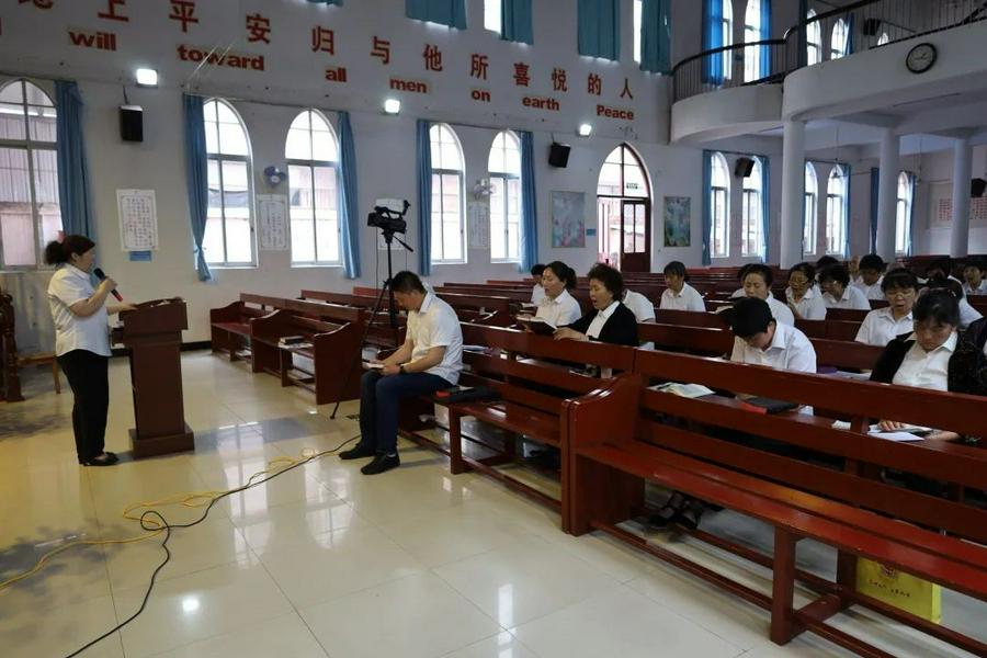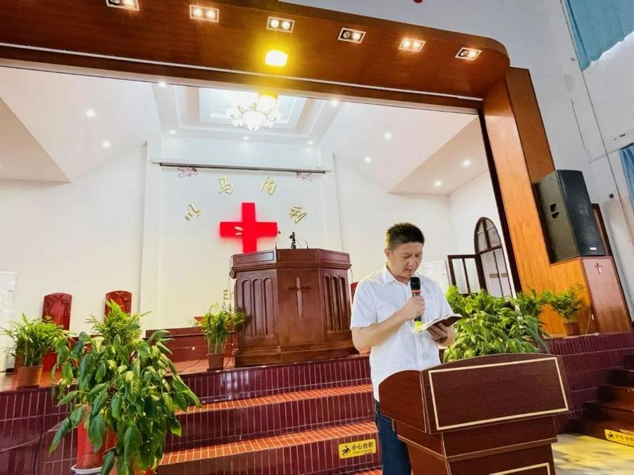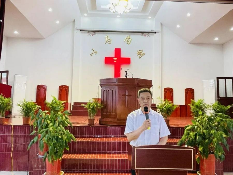 紧接着是同工大会,由本堂办公室主任瞿鹤清主持,他首先传达了两个文件,一是由南通市通州区民族宗教事务局在2022年5月30日发布的《关于开展2022年“民法典学习月”“民族宗教政策法规学习宣传月”活动的通知》;二是南通市民宗局转发的江苏省民宗局《关于在全省宗教届开展“爱党爱国爱社会主义”主题教育的通知》,并借此劝勉大家,要多学相关的法律知识,做一个学法、懂法、守法的基督徒。
