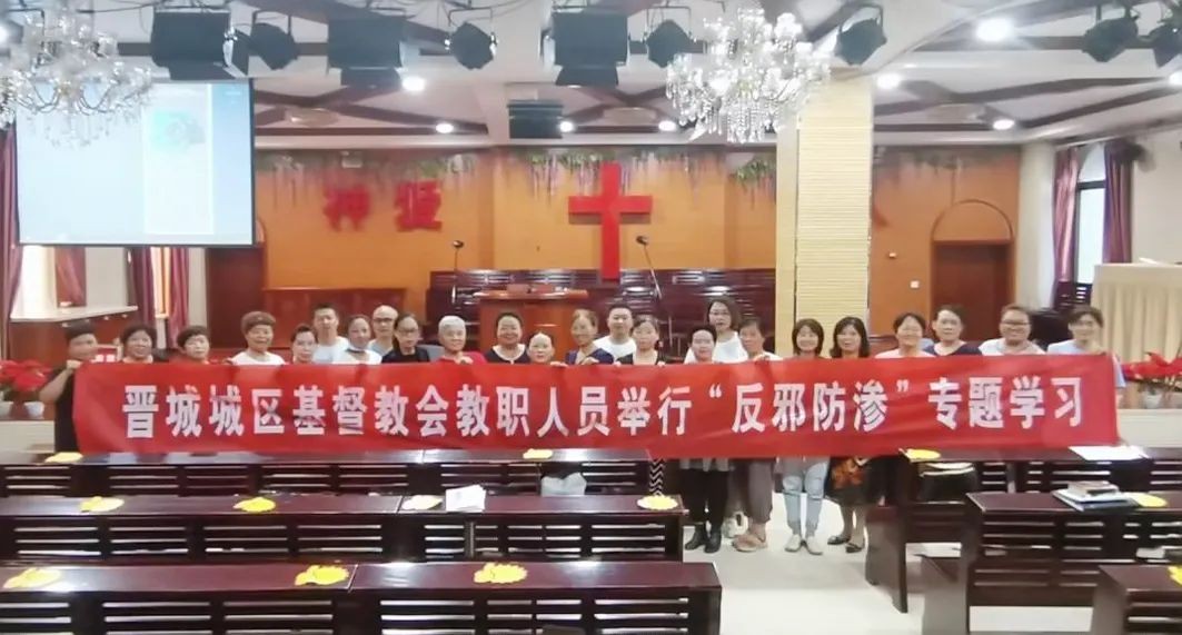为迎接党的二十大召开,引导全区基督教信徒认清异端邪教的本质和危害,提高辨识和防范能力,维护教会、社会和谐稳定,8月20日,山西省晋城市城区基督教会组织全区教职同工近40人在城区教堂一楼开展了“喜迎二十大,反邪防渗护稳定”主题教育活动。