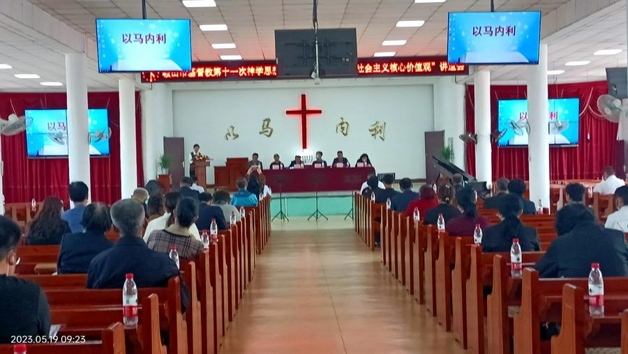 2023年5月19日星期五,辽宁省鞍山市基督教第十一次神学思想建设研讨会暨践行社会主义核心价值观讲道会在鞍山市高新区齐大山基督教堂主堂举行。