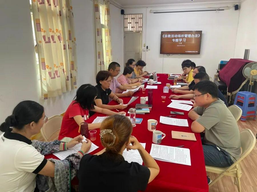 中山市基督教两会及各堂点根据中共中山市委统战部《关于学习贯彻<宗教活动场所管理办法>的通知》要求,于8月2至10日组织教职人员、堂委、全职侍奉人员、义工骨干等认真开展学习活动: