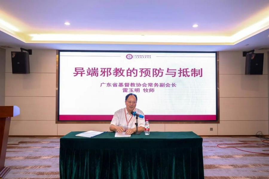 雷玉明牧师以“异端邪教的预防与抵制”为题,列举了异端邪教的表现形式和危害,以圣经和神学为依据一一进行驳斥,提升学员们的宗教素质及识别、抵制邪教的能力,构筑反非法宗教活动的“第一道防线”。