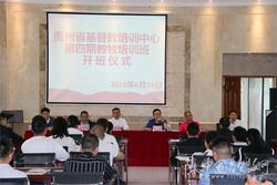 2024年6月24日上午,贵州省基督教教牧培训中心第四期教牧培训班在贵州圣经学校开班。开班典礼由贵州省基督教协会副会长兼总干事晏林斌牧师主持,贵州圣经学校教务长杨兴品牧师祷告,贵州圣经学校校长、贵州省基督教教牧培训中心主任杨朝云牧师致辞,贵州省基督教三自爱国运动委员会主任罗应富牧师讲话。贵州省民宗委相关业务处室负责同志到会指导。