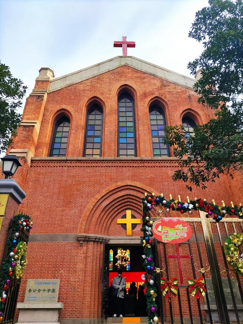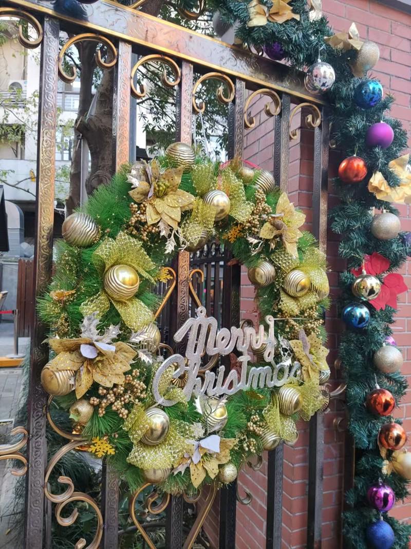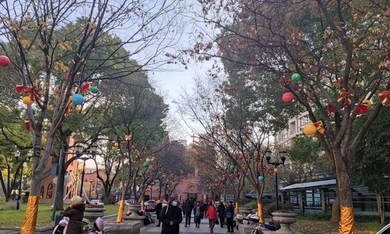 一年一度信徒欢庆的圣诞节再有两天就来到了,无锡基督教堂已早早穿上了圣诞的装束。教堂门口的两排树上挂着蝴蝶结和彩球,在欢迎着人们回家;大门上的将临圈以及院内高大的圣诞树等装饰直接把人们带入圣诞氛围中。