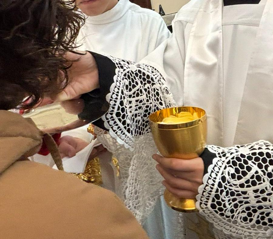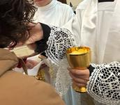 在随后的圣餐礼当中,会众排成两队,由主礼牧师和证道牧师分别将饼蘸入葡萄酒中,喂入领受圣餐的每位信徒口中。未受洗者则在胸前摆出“X”的手势,接受牧师的祝福。