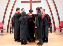 2024年12月15日,天津市基督教两会在百年老堂——仓门口堂举行第13次圣职按立典礼,按立赵庆磊、李由、张婷、马艳艳、王娜梅、蔡宝文六名教士为牧师。