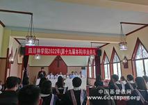 典礼在庄严的国歌声中拉开序幕,主礼人通报了23名毕业生的学业情况。省基督教三自爱国运动委员会主席、四川神学院院长饶建华牧师为毕业生颁发毕业证书,为获奖同学颁发荣誉证书。