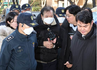 ▲2024年12月19日,“建进法师”全成裴(中)到首尔南区检察官办公室接受询问