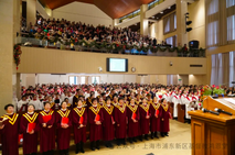 12月24日19:00-20:30,上海涌恩堂举行了平安夜圣诞音乐崇拜。音乐崇拜在《齐来崇拜歌》中拉开序幕,诗班人员手持蜡烛登场并献上圣诗《平安夜》。